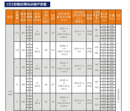 CD1型電動(dòng)葫蘆起升高度: 6m、9m、12m、18m、24m、30m